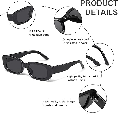- UV400 PROTECTION - These rectangle sunglasses block 100% of harmful rays and protect your eyes from long-term UV damage, so you can wear them outside with confidence